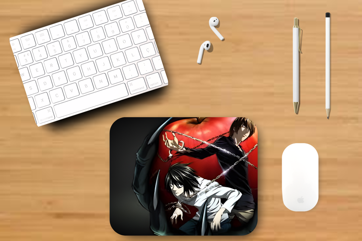 Mouse Pad Personalizado Death Note color blanco . Posee base antideslizante y un diseño resistente, brindando toda la comodidad al alcance de su mano.