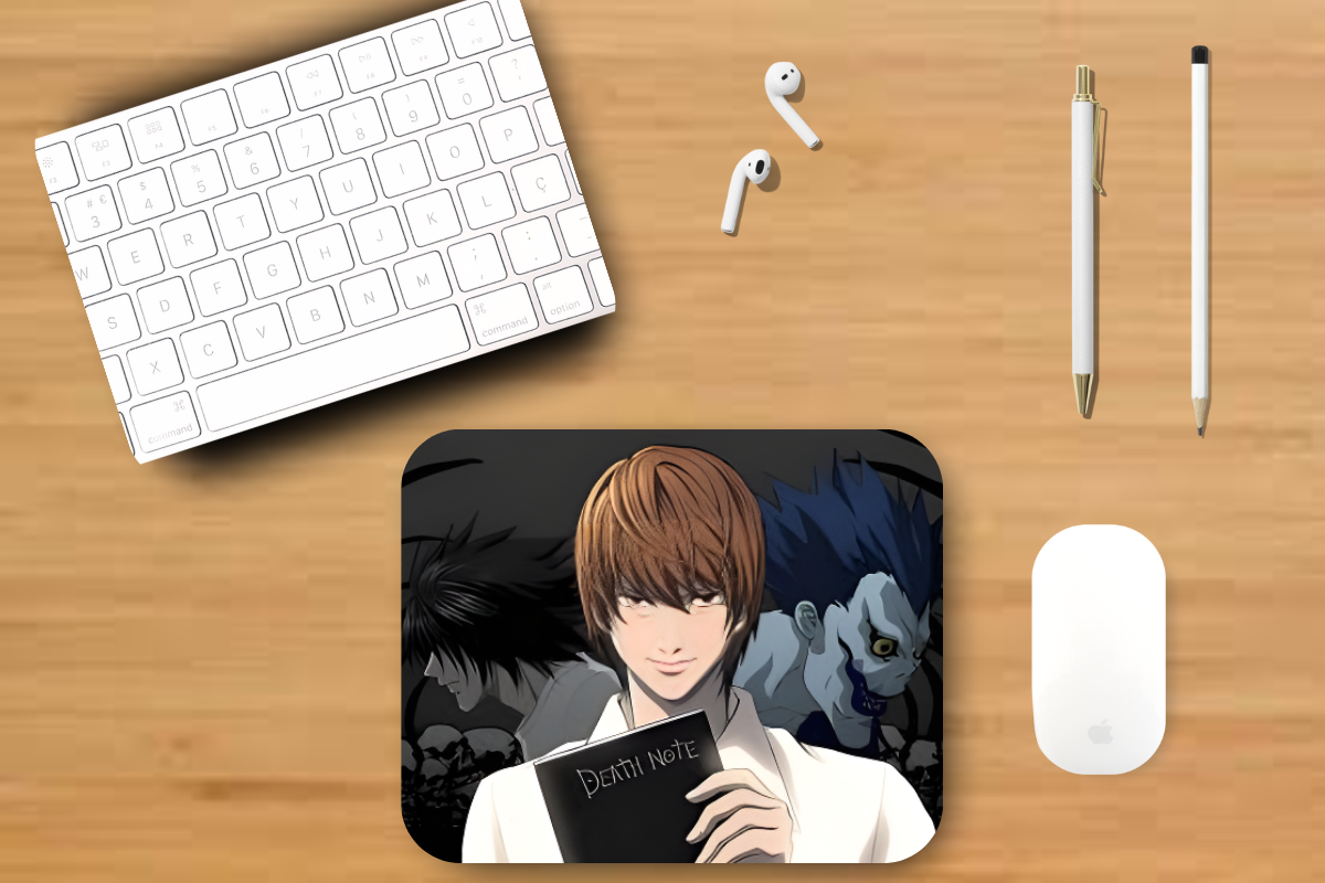Mouse Pad Personalizado Death Note , color blanco . Posee base antideslizante y un diseño resistente, brindando toda la comodidad al alcance de su mano.