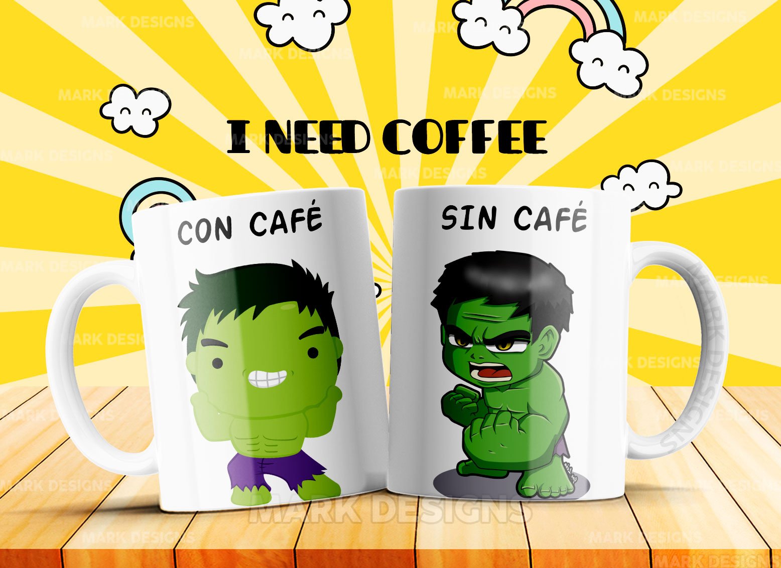 Tazon Personalizado Hulk Con Cafe Sin Cafe  , Con La mejor Calidad.