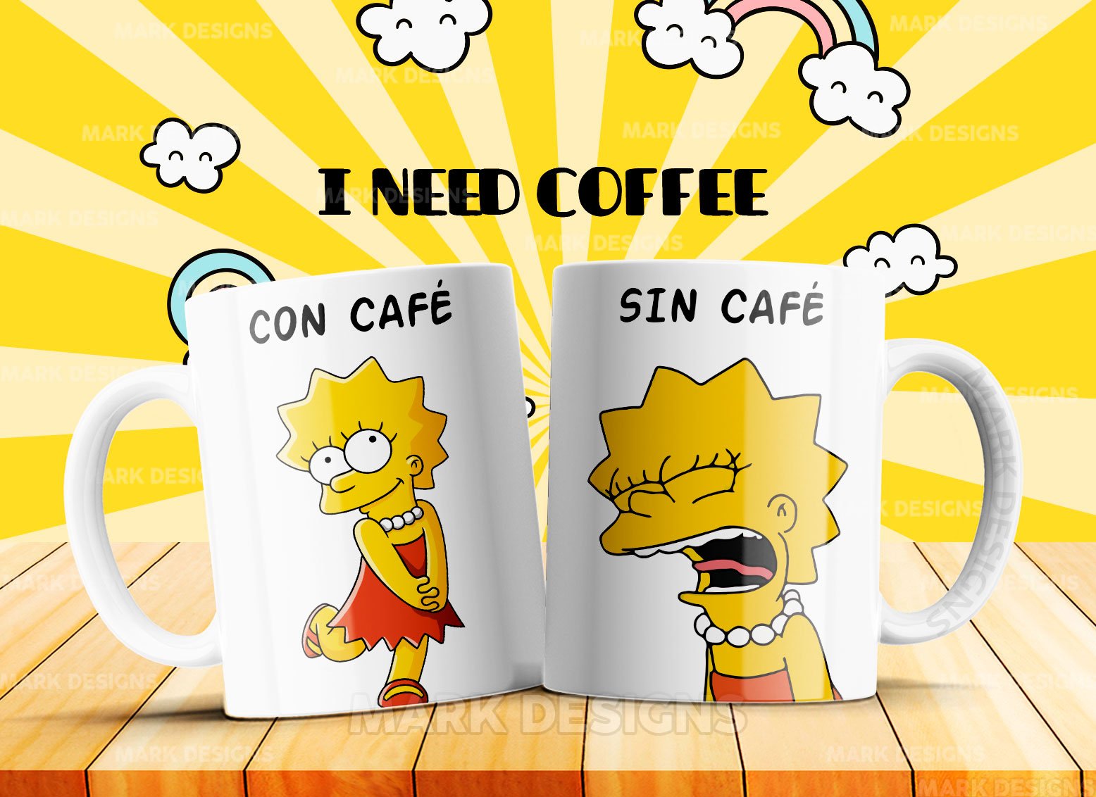 Tazon Personalizado Lisa Simpson Con Cafe Sin Cafe , Con La mejor Calidad.